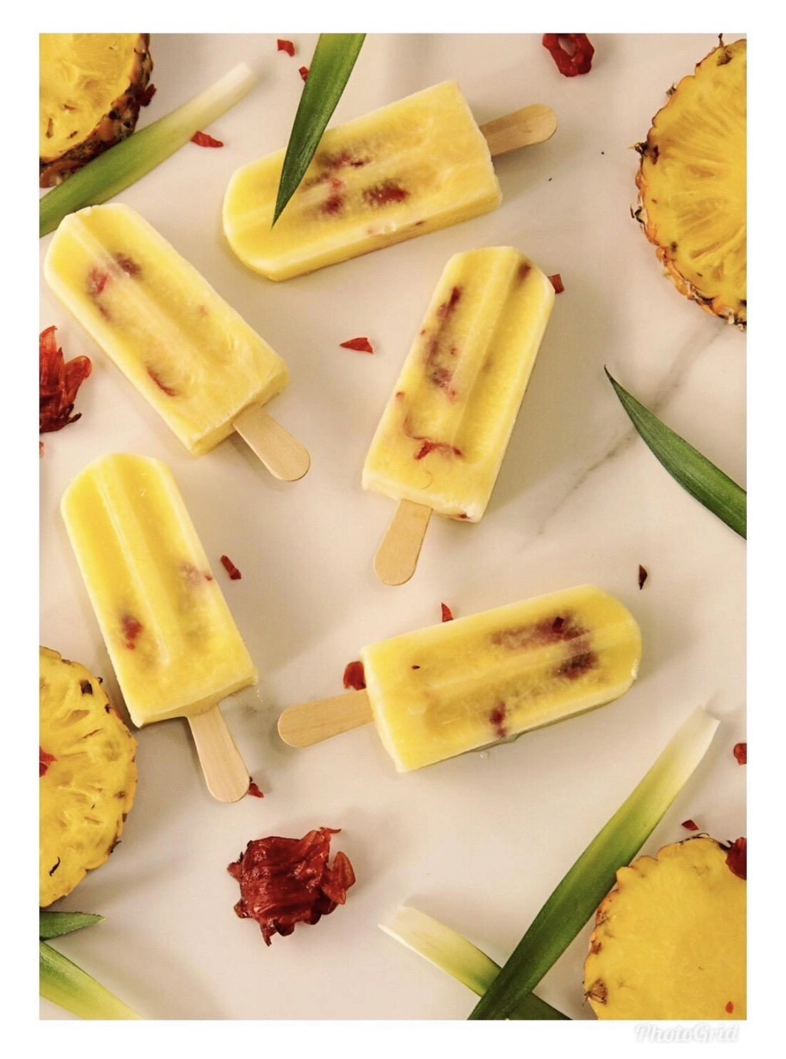 用台灣美味的金鑽鳳梨及台東有機洛神花製作的蜜餞,相互交織成美麗又好吃的水果冰棒,是夏季的消暑聖品。
