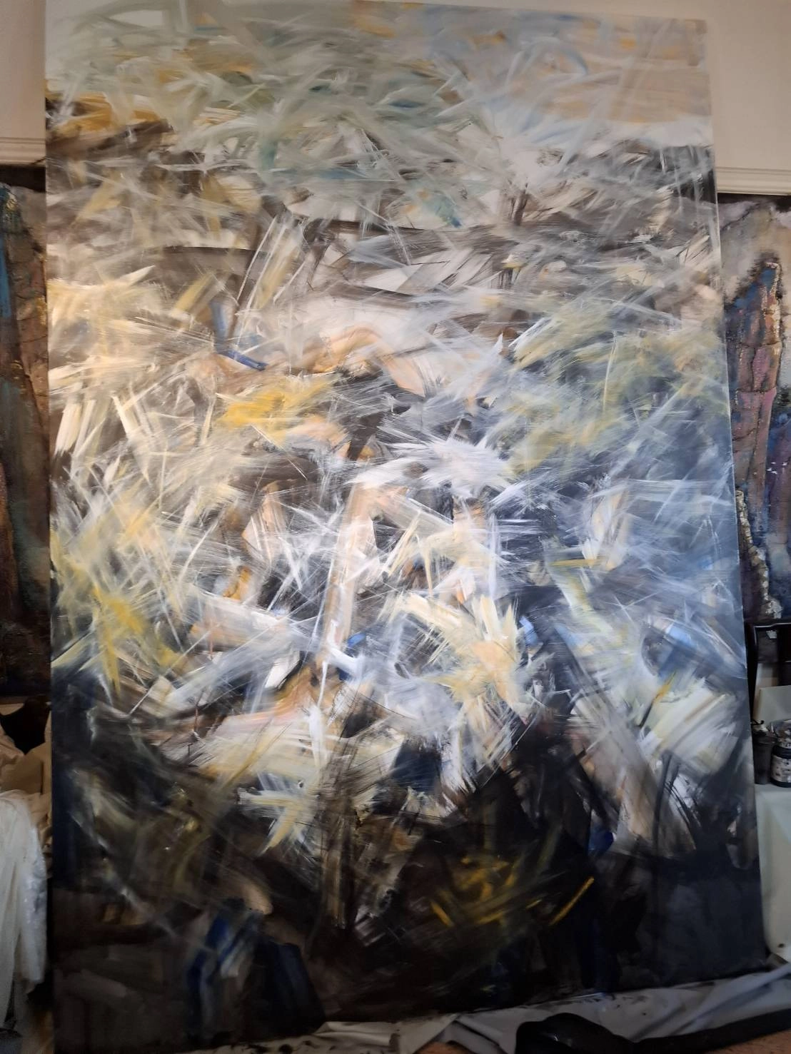 媒材:油彩、畫布,複合媒材,詳見內文描述