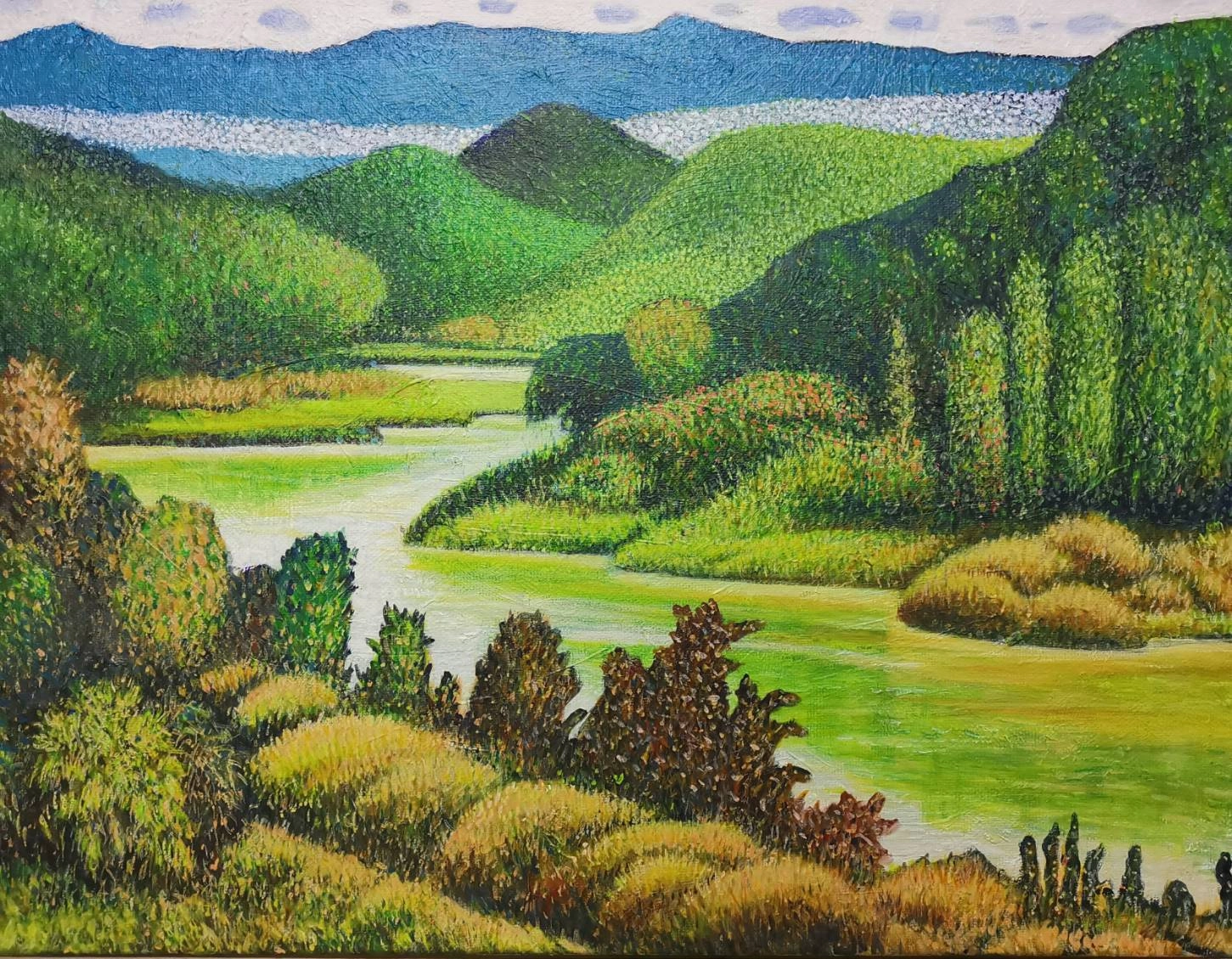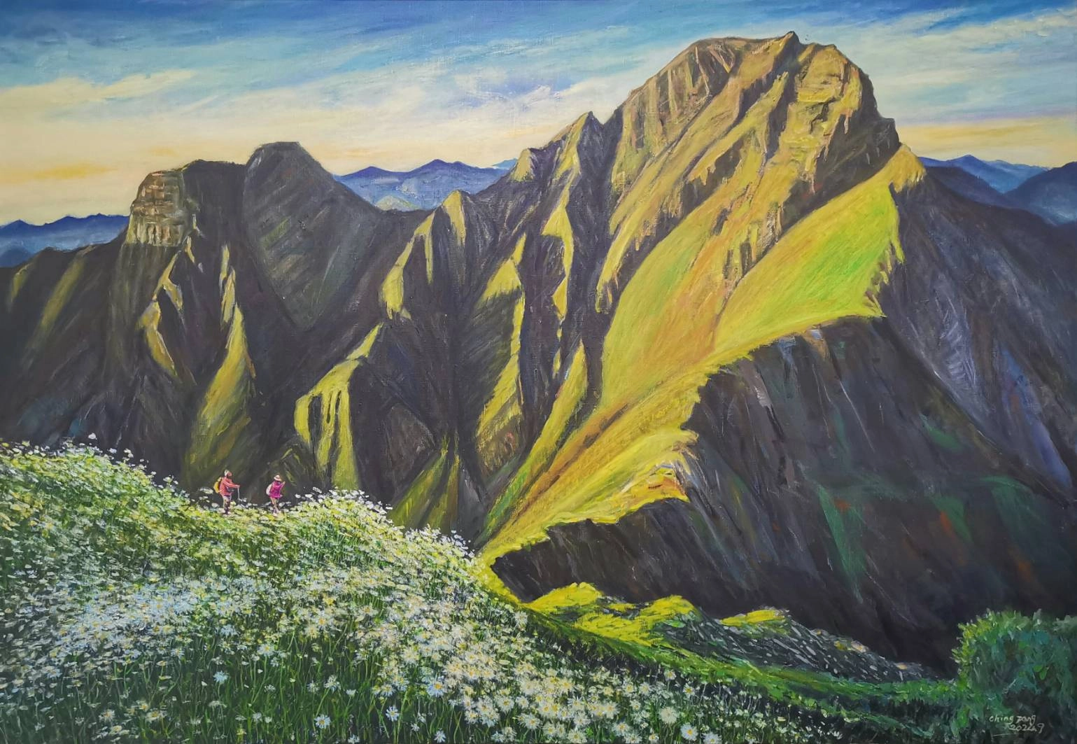 曾經畫過南橫暮色,和參考同學的照片畫塔關山大斷崖雪景,如今完成霧鹿峽谷一作,雖然心生慰藉也有感傷,希望大家疼惜這美麗多山的島,也為多災多難的東部祈福,讓布農部落的八部合音持續繚繞在美麗的山谷。