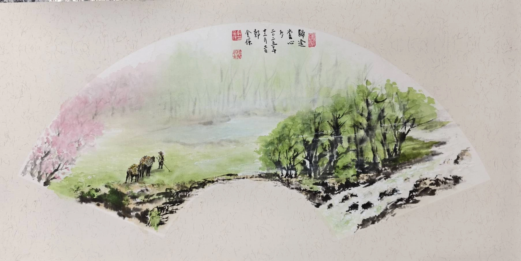 尺寸/影音長度:紙本水墨扇面( 画心26X59 / 外鏡片33X67 cm )