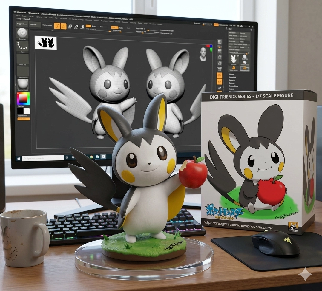 請用我提供的原圍,把團片內主體曼成電腦桌前的立體公仔。