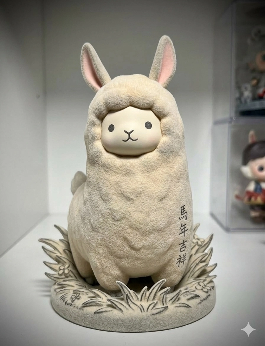 使用指令:以此手繪新年賀圖作為範本生成公仔照片。