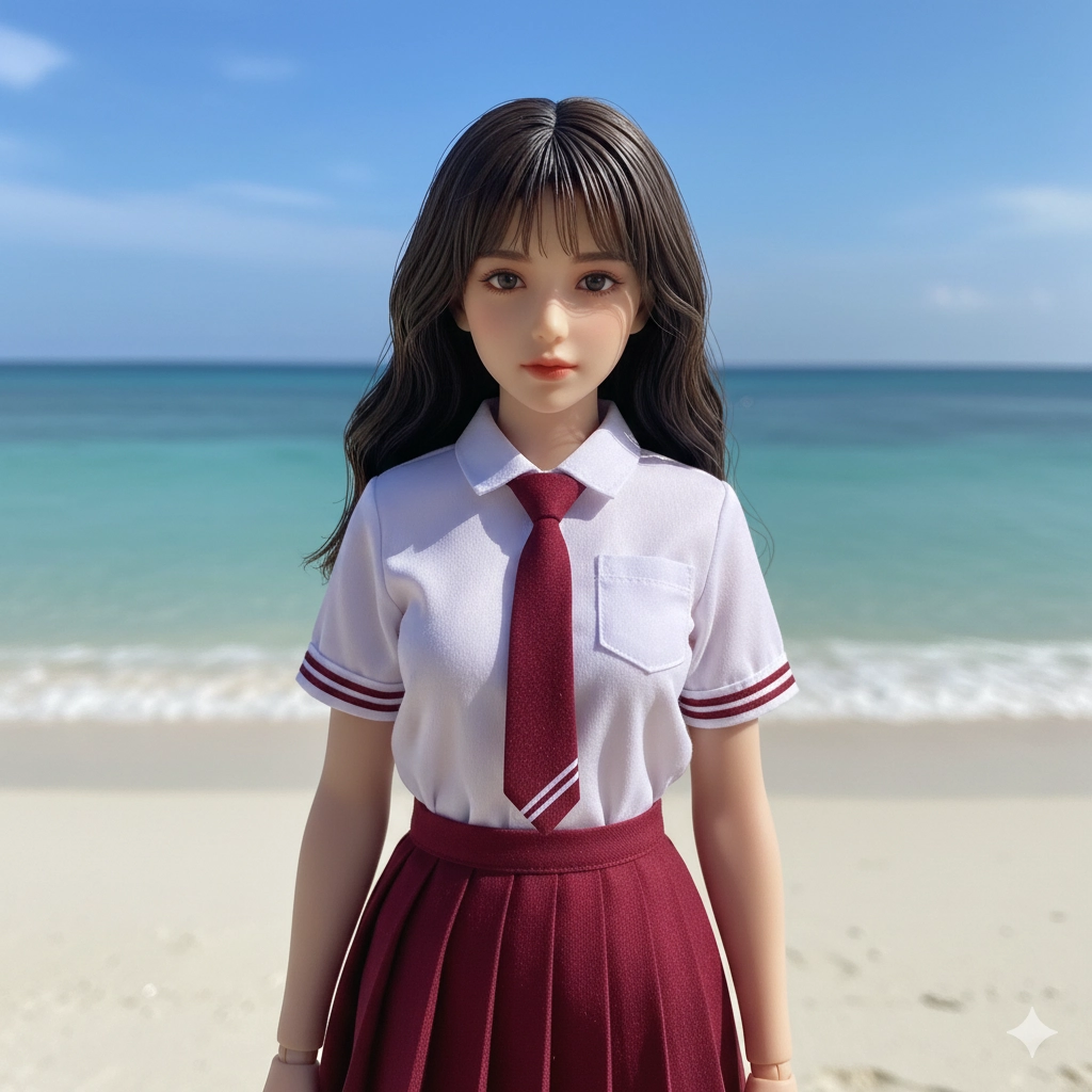可以幫我用這張照片做一個立體公仔嗎可愛的然後跟照片像一點背景在沙灘
