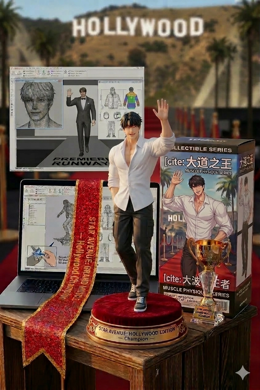 請用我提供的原圖,把圖片內主體變成海邊的立體公仔。場景海邊,上面擺放著一個 1/7比例的 PVC 公仔,角色以站立姿態呈現,並固定在海的顏色圓形底座上,呈現出細緻逼真的動漫風格收藏品質感。在公仔的背後是一台電腦螢幕,螢幕上顯示該角色的 3D 設計圖,就像有人在海邊衝浪的感覺,以及其模型盒,設計為市售收藏品風格,正面印有該角色的彩色動漫插圖,呈現完整的周邊商品氛圍
