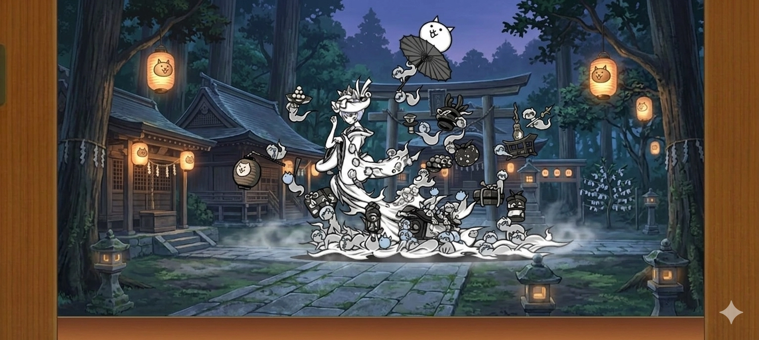 第一張只留下角色其他去掉第二張背景加上神社