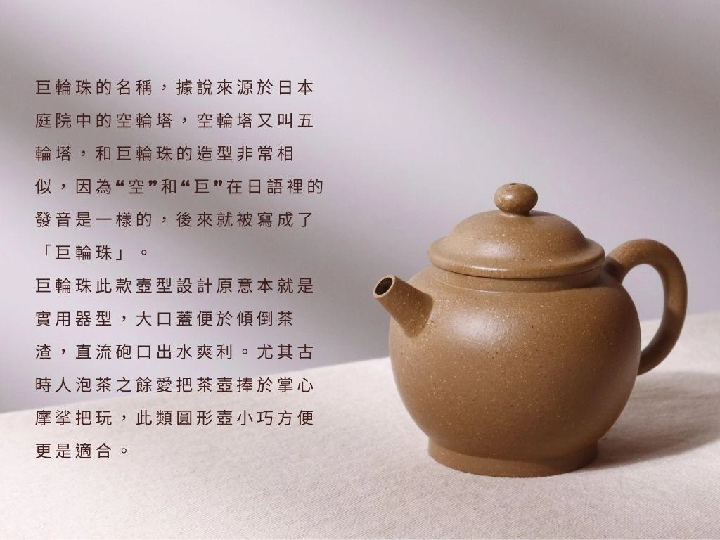 巨輪珠此款壺型設計原意本就是實用器型,大口蓋便於傾倒茶渣,直流砲口出水爽利。