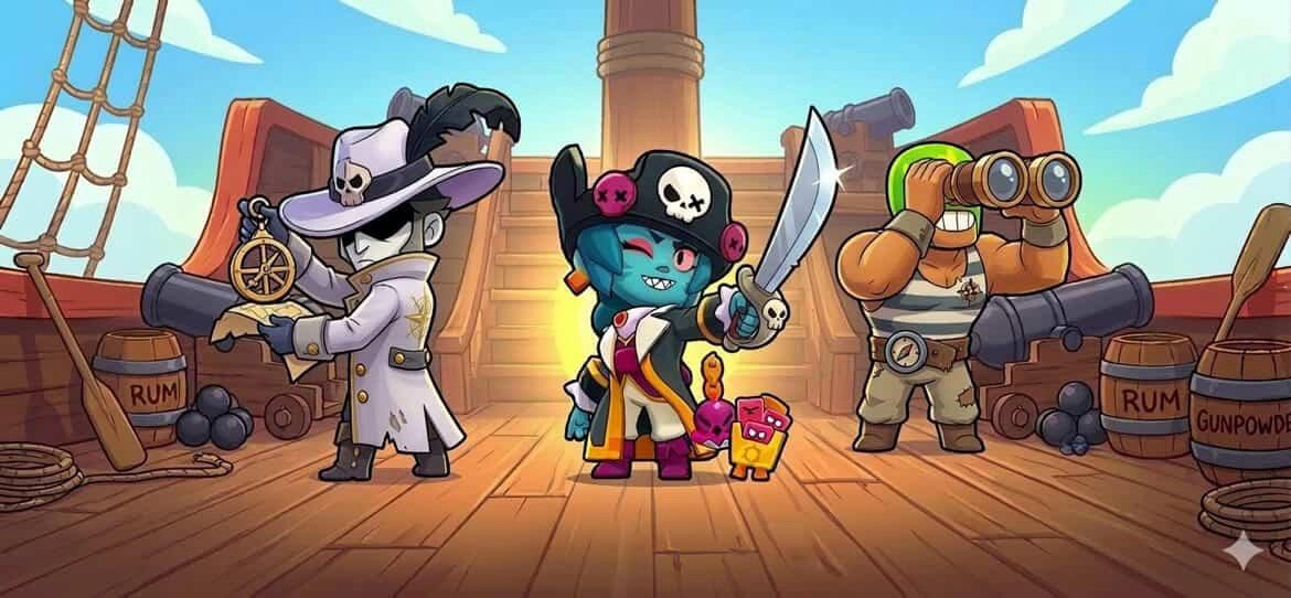 1.一個海盜女孩拿著彎刀站在海盜船甲板上背景幫我加一些海盜船上面會出現的東西像是大砲木桶船槳而旁邊是