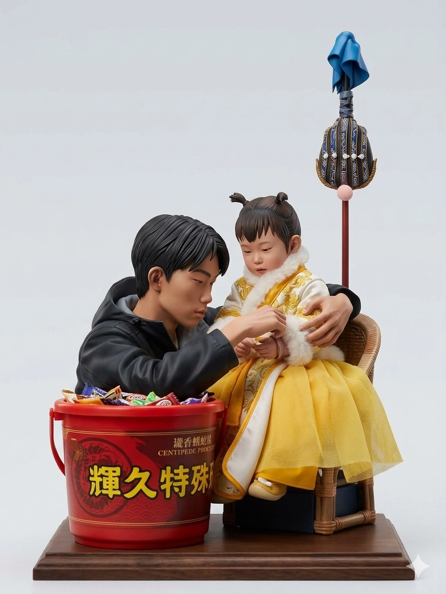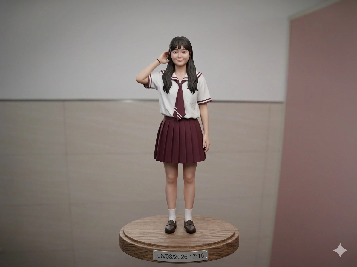 這是我請Gemini幫我做的模型公仔示意圖以下是指令:幫我依照這張照片做成一個有底座的小型公仔,需要