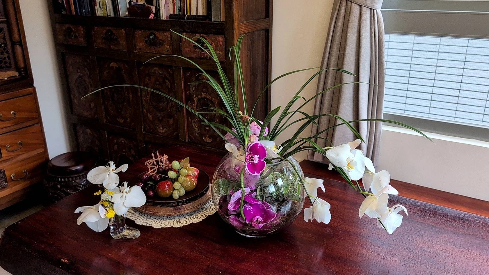 活動剩下不少花材棄之可惜,整理後又綻放生命力量,美化家居一角。