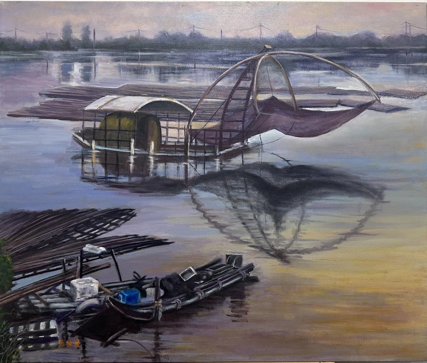 作品說明:象徵無數青山到我家,河流滾滾如青山匯集,智慧,文質,財富,健康,快樂的泉源。