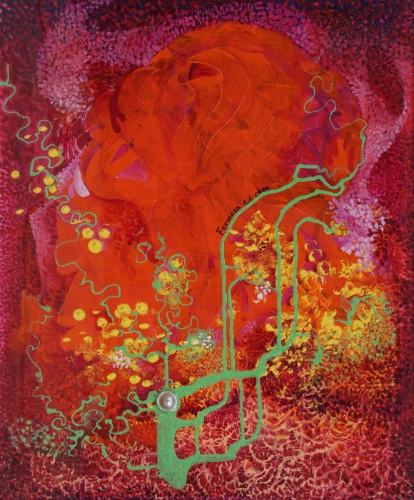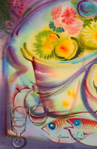 創作理念:繪畫多年希望能融入自己的風格,創造出詮釋的方法,畫裡要有裝飾性,但不是裝飾畫。融合中西貫穿