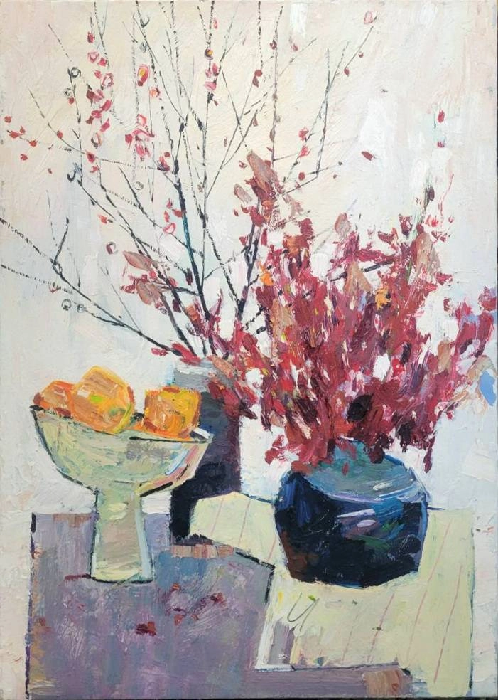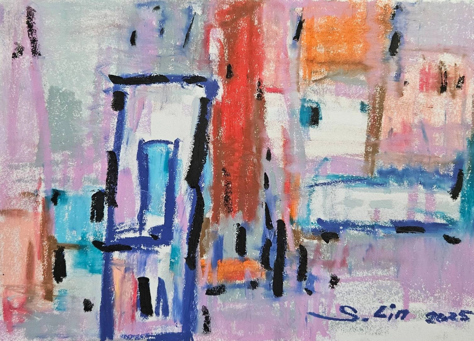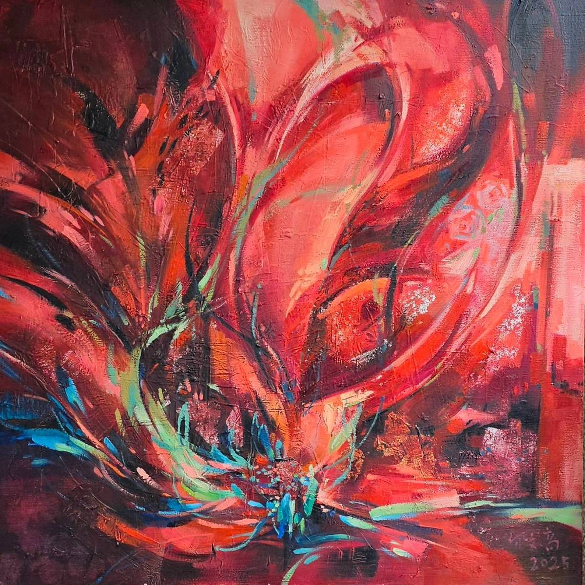 玫瑰花開時(油畫100×100cm2025)玫瑰花開時淺紅粉紅火紅與深紅以極簡的線條演出絢爛的定義圖