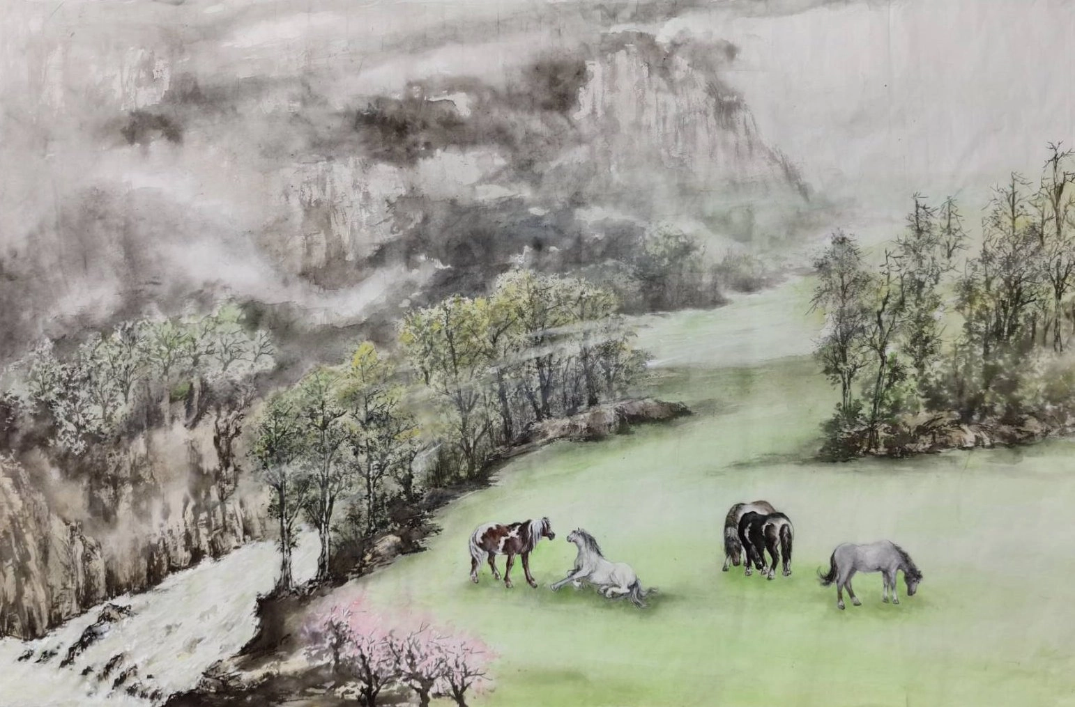 作品以天狗形象為主題,靈感源自作者對廟會文化的熱愛。以俐落線條刻畫出神祇威猛而靈動的姿態,呈現傳統信