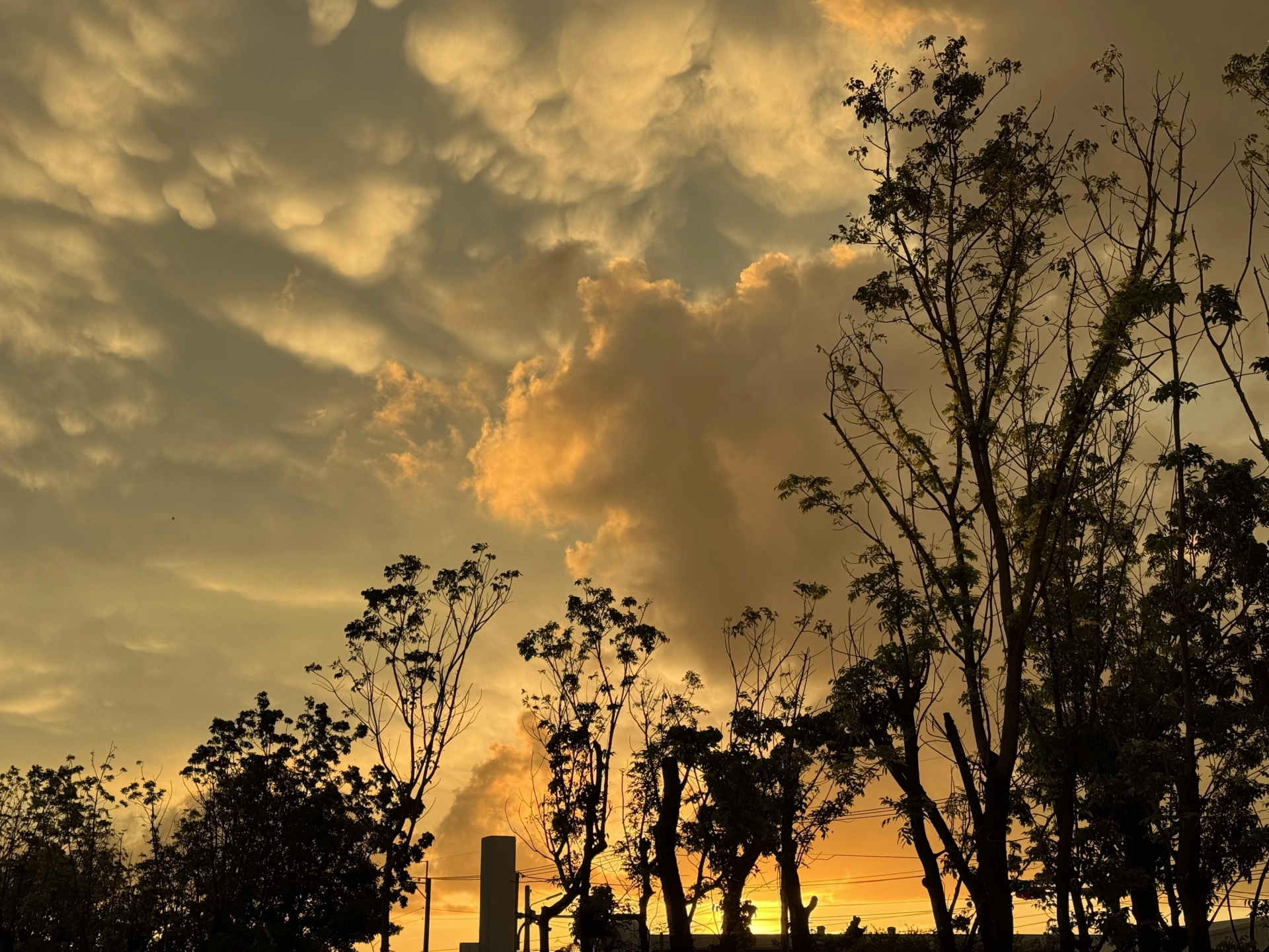 這是在要去倒垃圾的路上,抬頭看天空發現它呈現很美的金黃色,就隨手把它拍下來了~