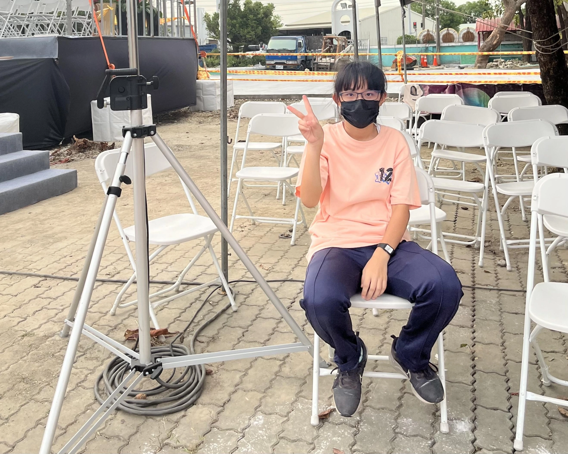 你說了請幫我把這張照片做成這類型的公仔且名字是陳映婷後面的學校為KangMingHighSchool
