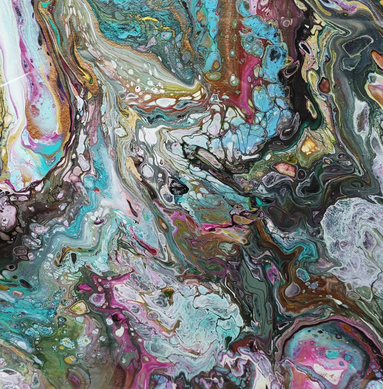 作品說明:象徵無數青山到我家,河流滾滾如青山匯集,智慧,文質,財富,健康,快樂的泉源。