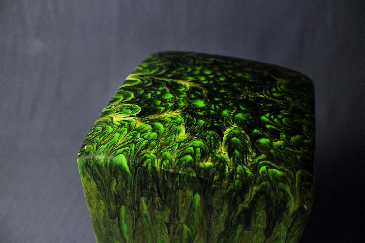 【金玉燒】因作品釉面上時有金屬光澤或者玉質的釉面之特色而定名。這是創作者近30年研究而獨創之特殊窯燒